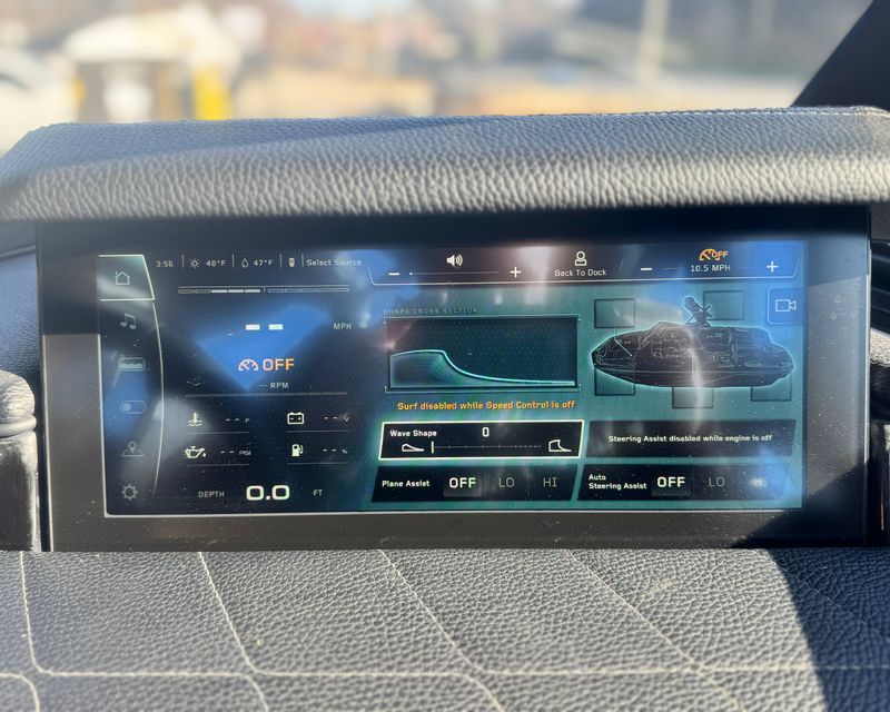 For ultimate comfort, it includes Seating - Actuated Helm Seat, Seating - Bow Armrests (Retractable), and Seating - Bow Filler Cushion. Stereo