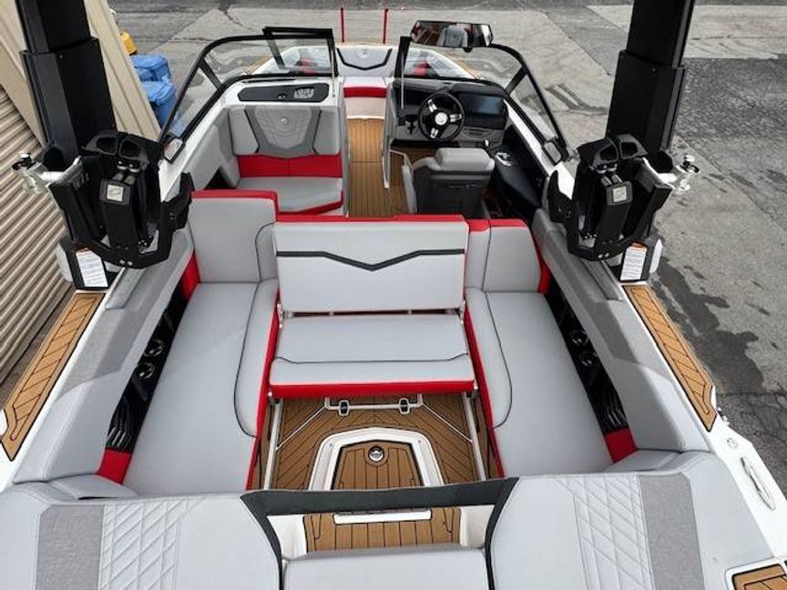 For superior performance, this model has a Supplemental 1,450 LBS Ballast. For safety, it includes an Automatic Halon Fire Extinguisher. Additionals include Underwater Lights for nighttime trips, Phender Pro boat fender attachment system, and Surf Select with Surf Switch.