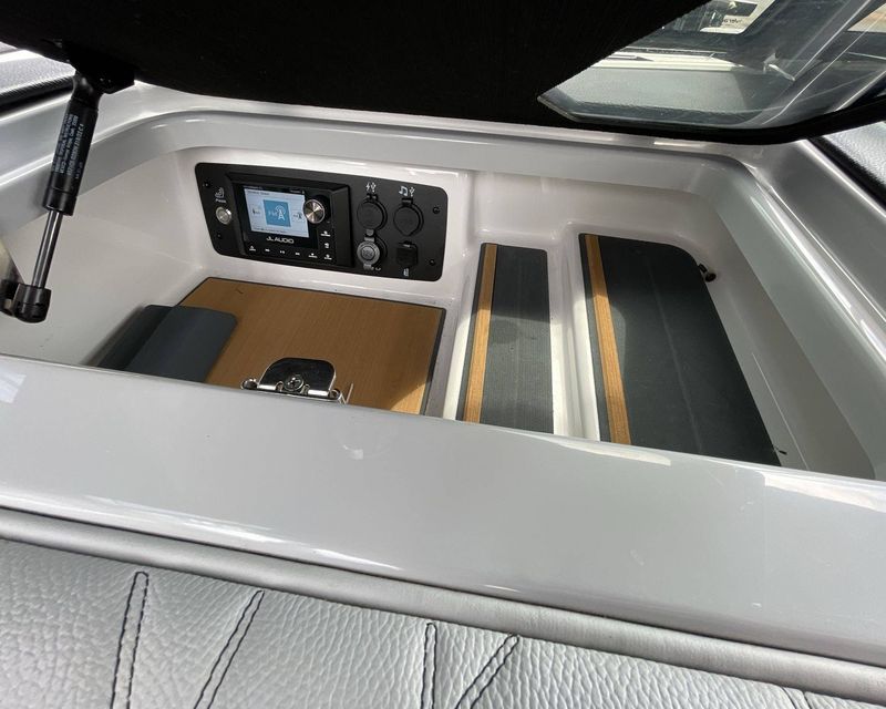 Ensuring optimal comfort, the 2023 Nautique Paragon 23 G23 offers heated driver's and love seating. Enjoy rocking out at top quality with our JL Audio Wake Sub, creating an unforgettable atmosphere.