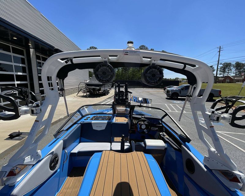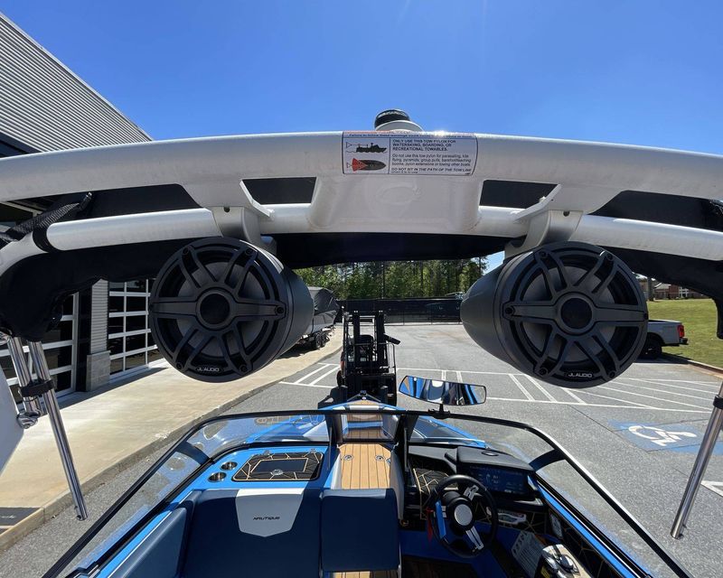 State-of-the-art Tower: The boat features an attractive and functional tower, providing a higher rope tow point for water sports, a place to mount speakers for on-water entertainment, and additional space for board storage.