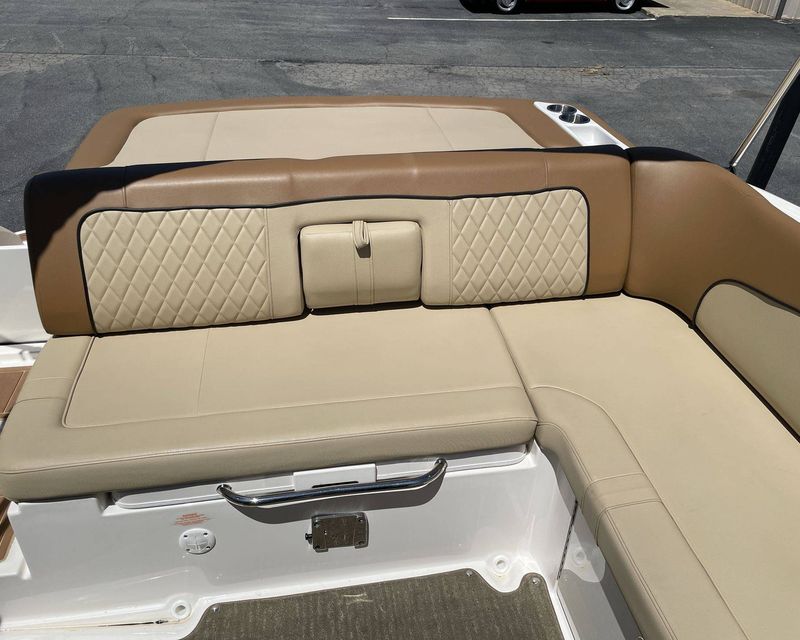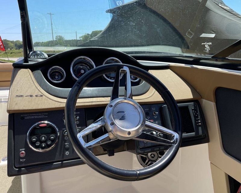 Additional amenities of this luxury boat include a fully-contained and user-friendly control panel, a state-of-the-art marine stereo system for your entertainment, and a transom shower to rinse off. The 2015 Sea Ray 240 Sundeck effortlessly blends functionality with sophistication, making it the ideal choice for any boating enthusiast.
