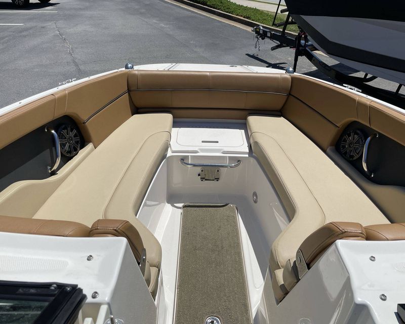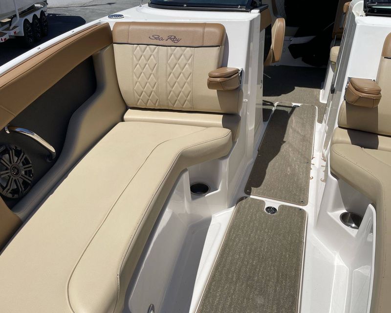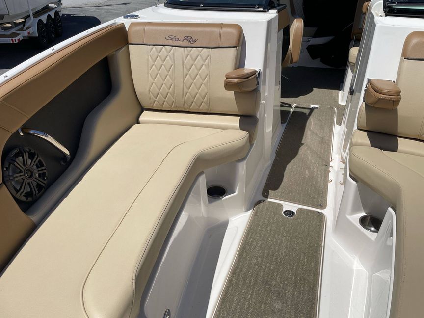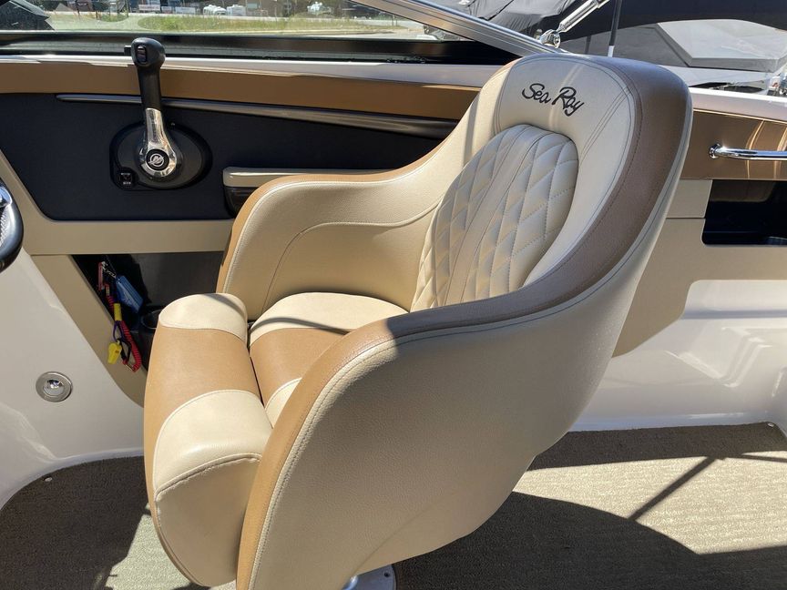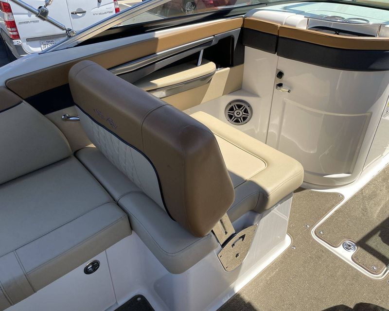 This vessel is designed with ample space, providing plenty of room to accommodate your guests. The spectacular layout features comfortable seating, perfect for sunbathing, an exclusive entertainment center and an inbuilt cooler for storing your refreshments. Experience fun-filled marine activities with unparalleled relaxation on the 2015 Sea Ray 240 Sundeck.