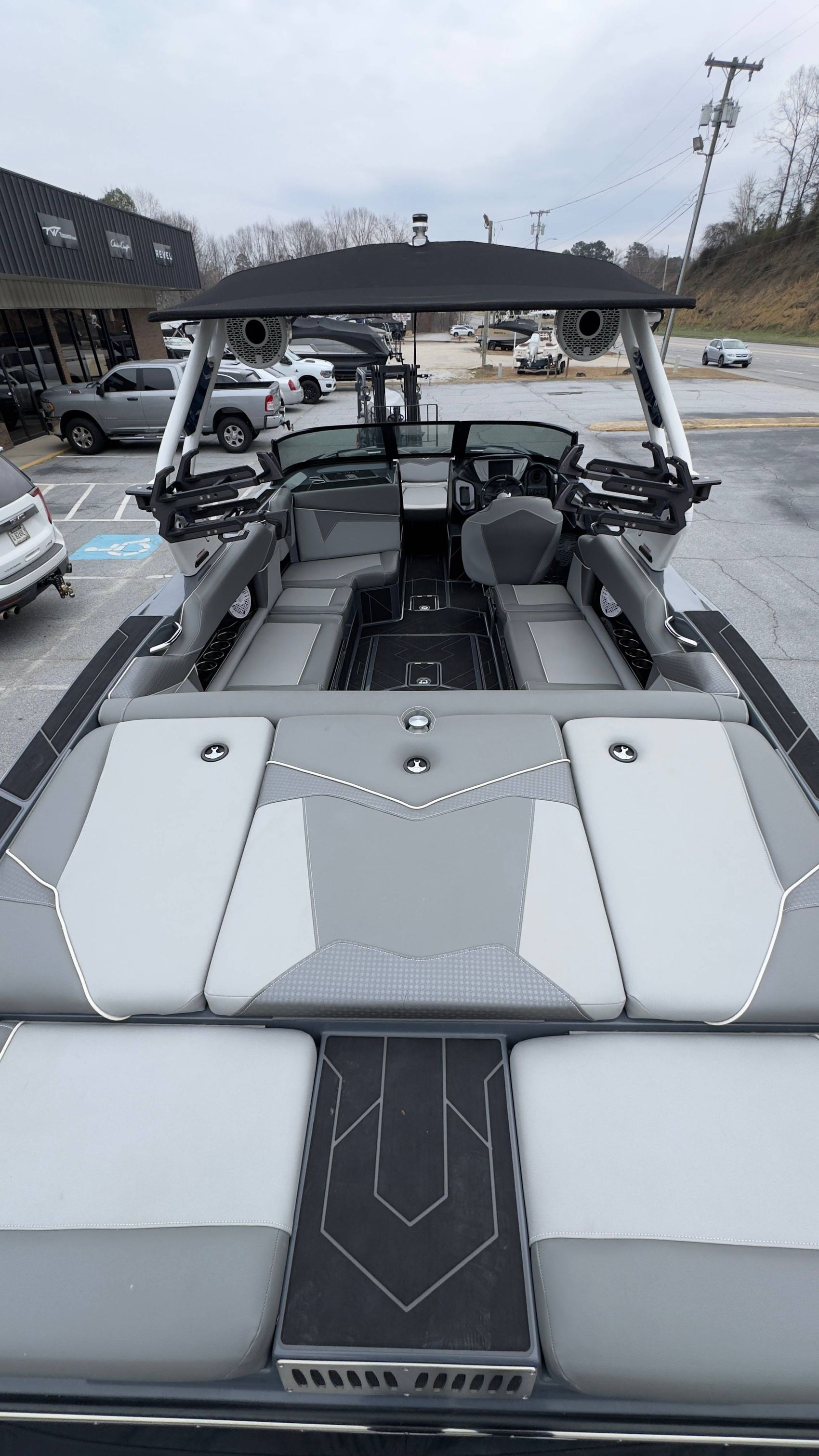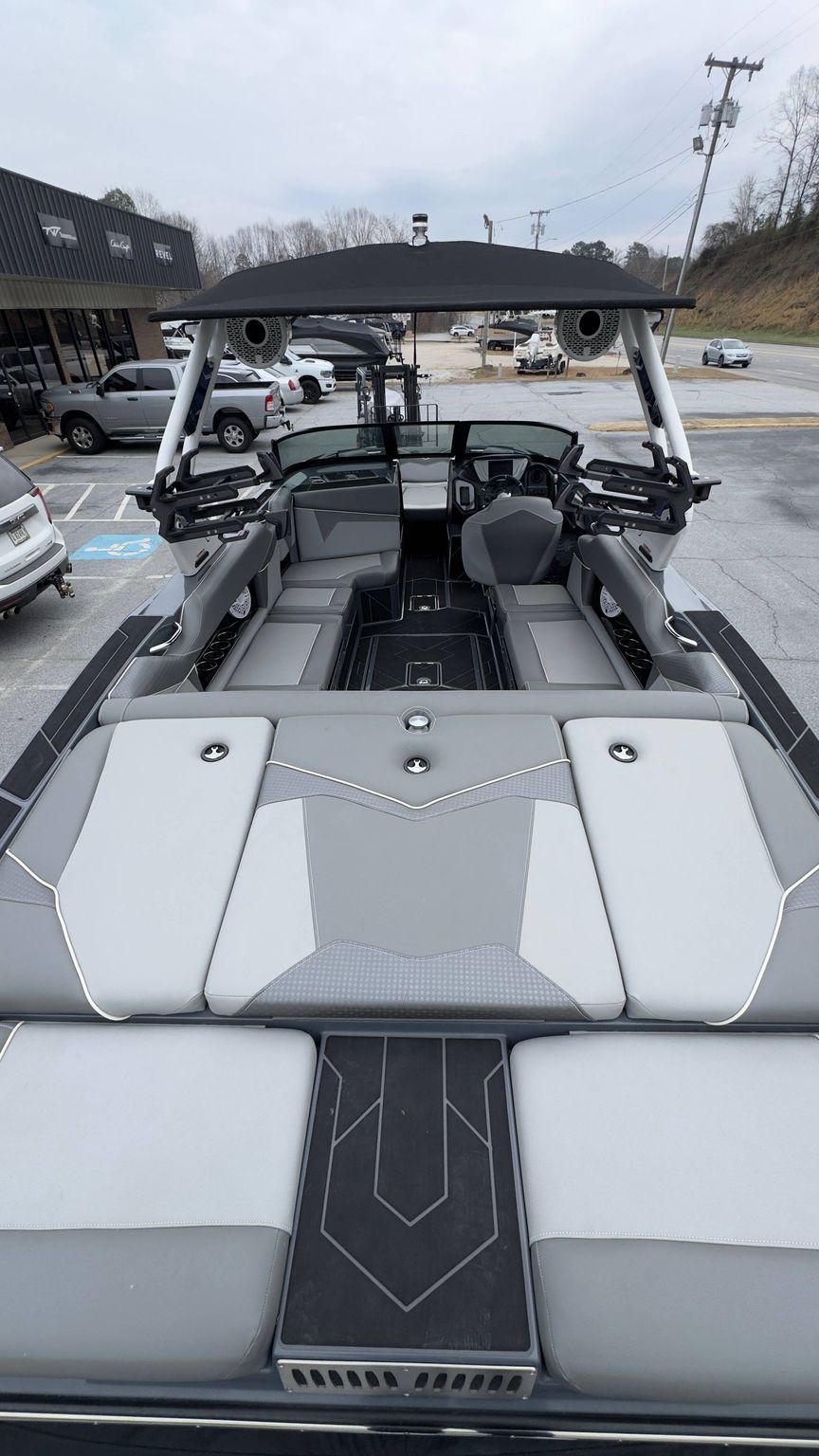- Skylon Board Racks: Convenient onboard storage for your water sports gear, well-integrated into the boat's clean lined design.